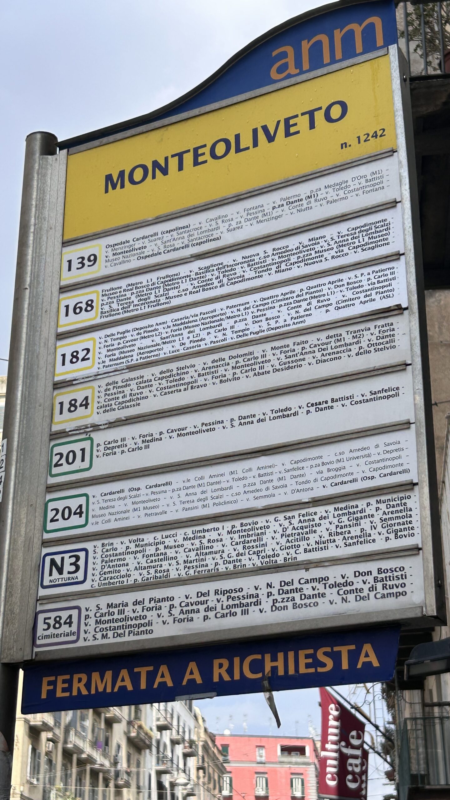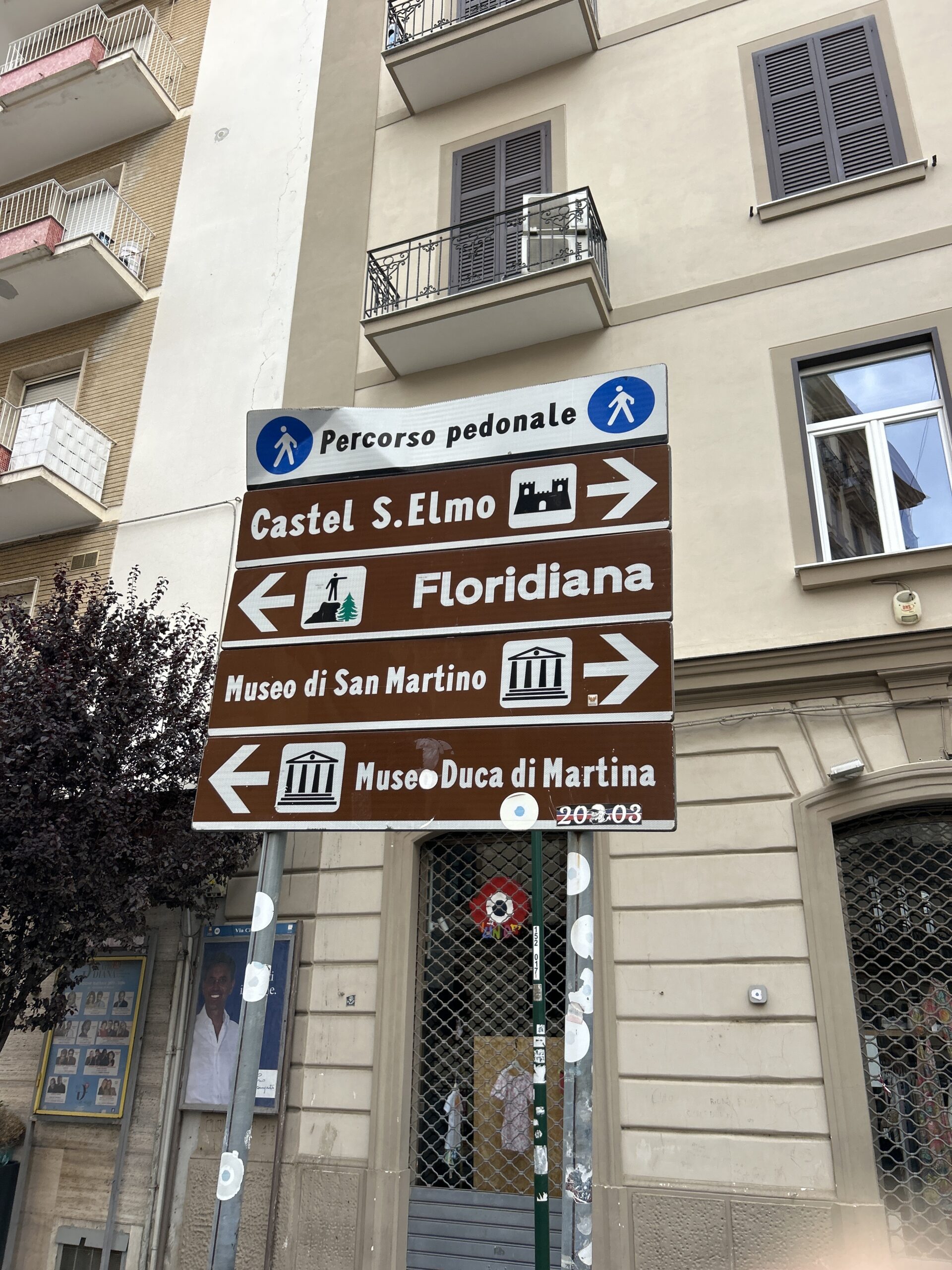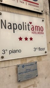 ナポリの看板は、街の雑多さや人々の生活感をそのまま映し出しています。
