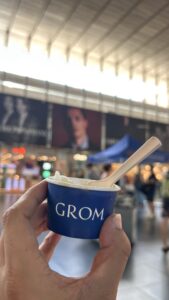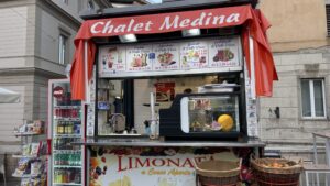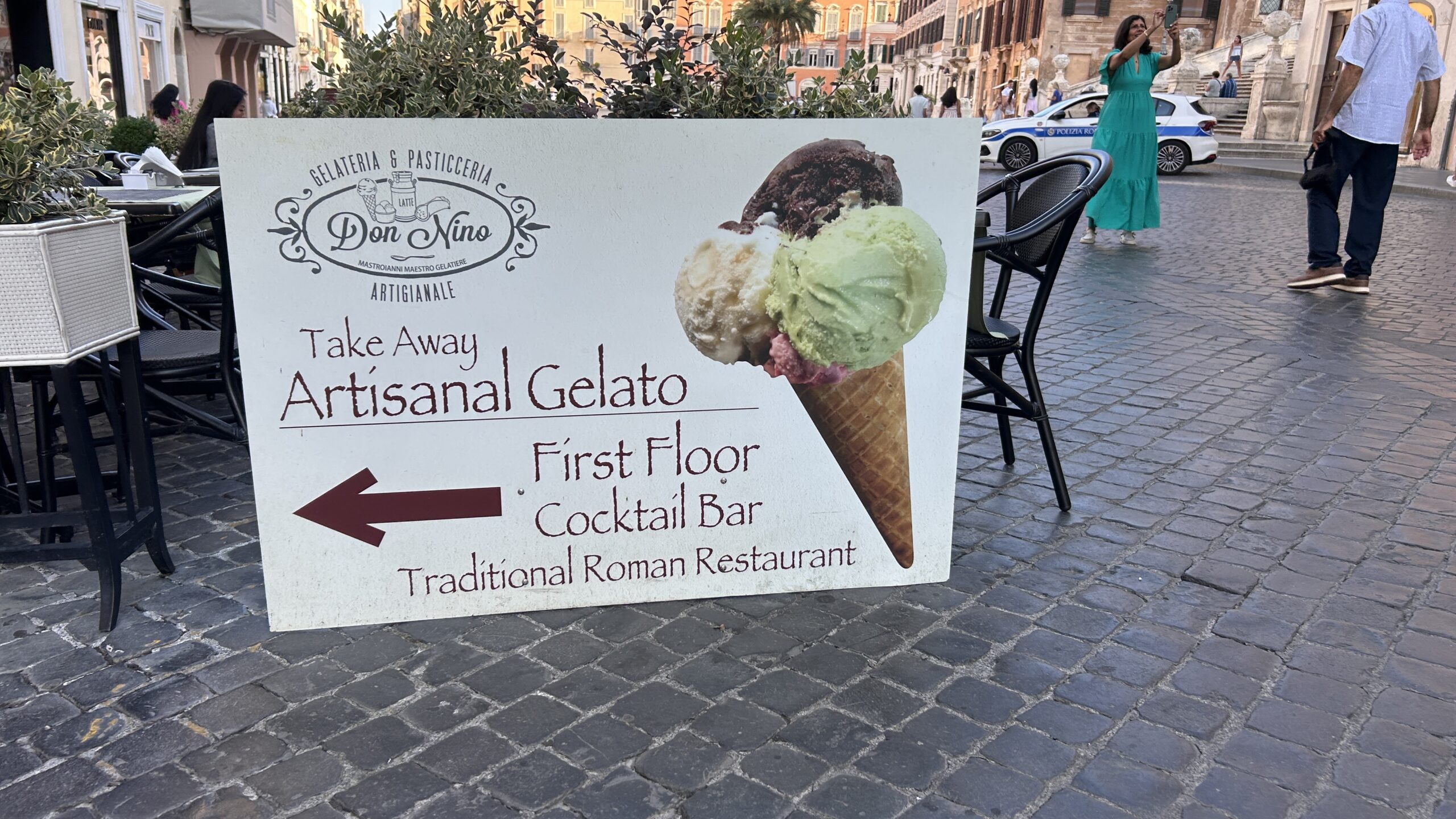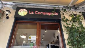 路地の小さな店ではイタリア語だけの看板が多く、観光客にはやや不親切に見える場面もあります。